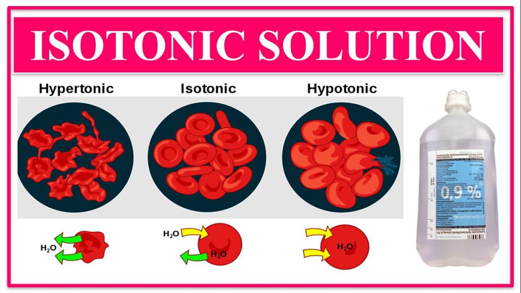 สารละลายไอโซโทนิก (Isotonic Solution): เป็นสารละลายที่มีความเข้มข้น (osmolarity) เท่ากับสารละลายในเซลล์ของร่างกาย เมื่อนำเซลล์ไปแช่ในสารละลายนี้จะไม่มีการเคลื่อนที่ของน้ำเข้าหรือออกจากเซลล์ ทำให้เซลล์คงสภาพเดิม
