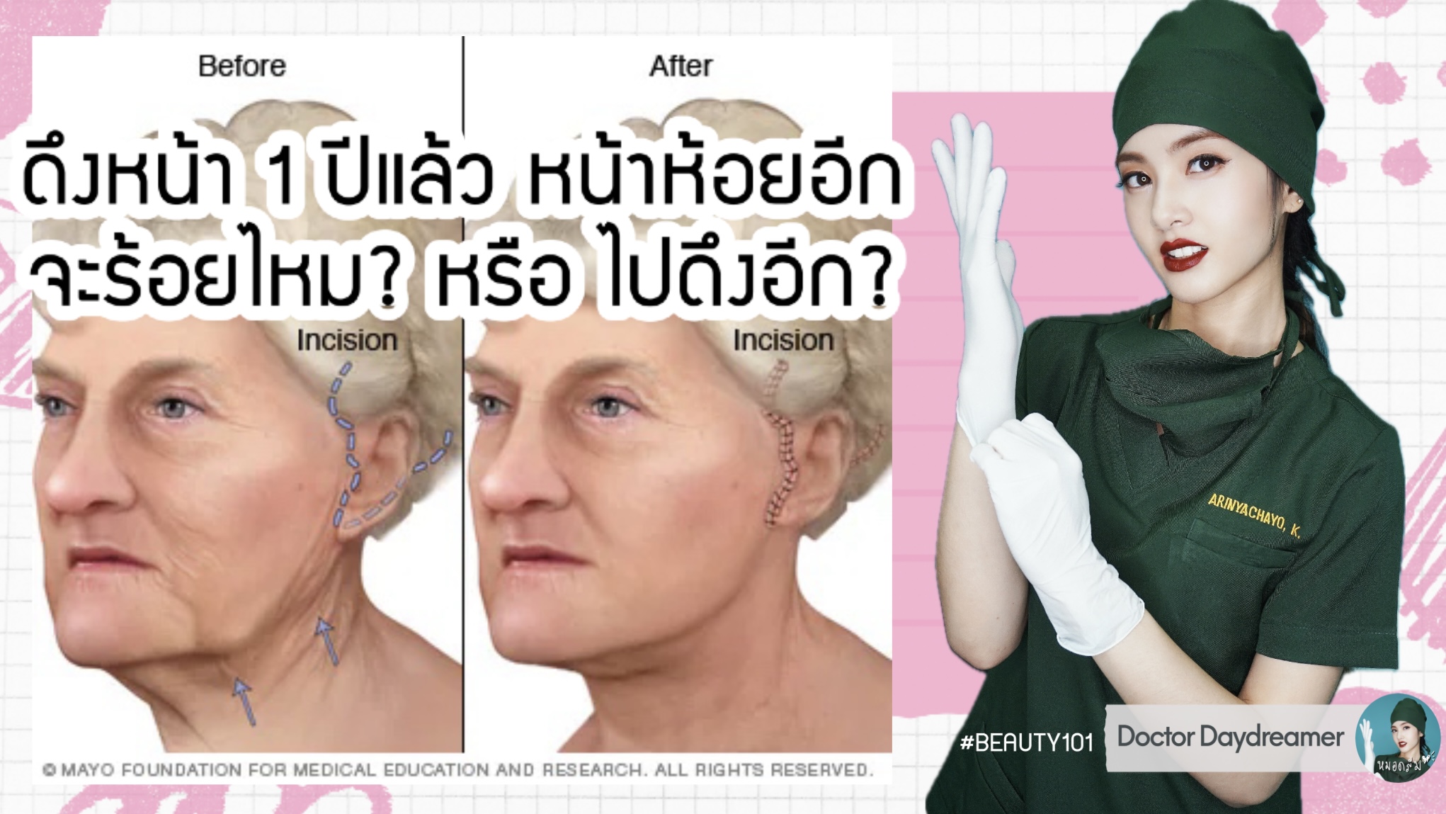 #ดึงหน้า 1 ปีแล้วหน้าห้อยอีก🪡จะ #ร้อยไหม หรือไปดึงอีก⁉️ | DOCTOR DAYDREAMER #BEAUTY101 ep.105 ❤️ thread lift after rhytidectomy #หมอดรีม