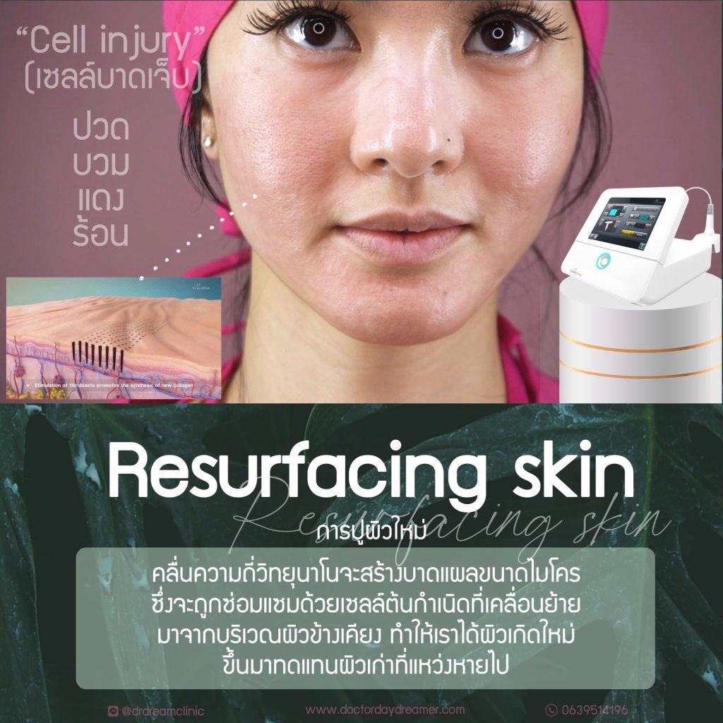 เรียกง่ายๆคือ “เกิดแผลข้างล่าง ไม่เกิดแผลข้างบน” มันจะไม่เหมือนกลุ่ม Resurfacing ที่ดรีมชอบพูดในช่องกับโปรแกรมผิวย้อนวัยนะ พวกนั้นสร้างผิวใหม่จะต้อง “เกิดแผลข้างบน ไม่เกิดแผลข้างล่าง” ค่ะ วัตถุประสงค์เครื่องจะสลับกัน กลไกการสร้างแผลก็เลยต่างกันตาม tissue target (เนื้อเยื่อเป้าหมาย)ค่ะ