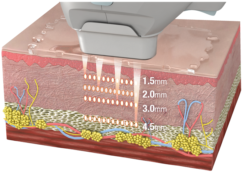HIFU ที่ถูกต้องจะสร้าง thermal coagulation point (TCP) หรือ แผลที่เป็นเป็น “จุดเล็ก ๆ” ใต้ชั้นผิวค่ะ ลึกที่