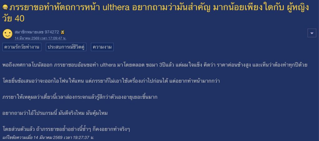 ภรรยาขอทำหัตถการหน้า ulthera อยากถามว่ามันสำคัญ มากน้อยเพียงใดกับ ผู้หญิงวัย 40